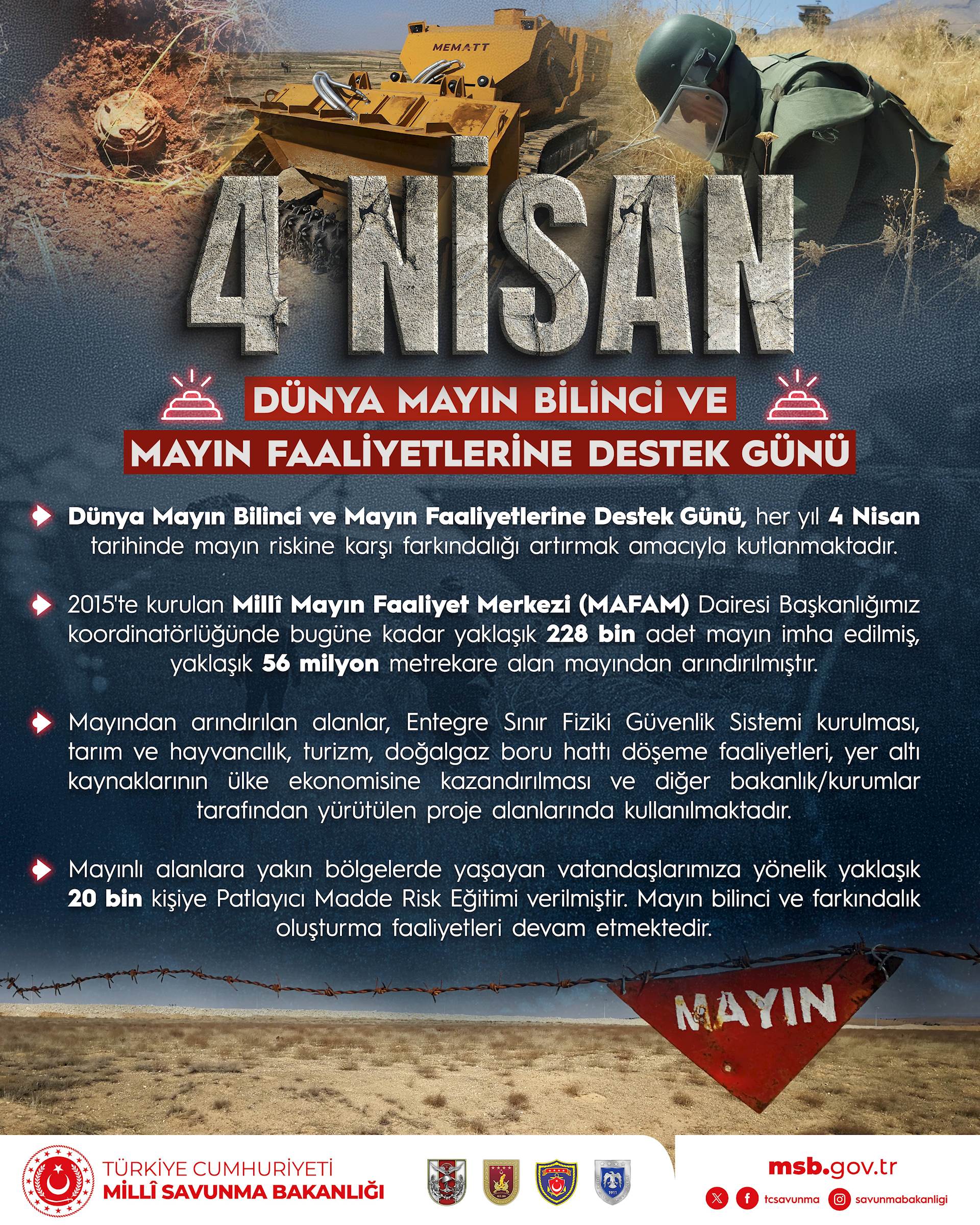 Tarih : 01.04.2026Bugün, Dünya Mayın Bilinci ve Mayın Faaliyetine Destek Günü!