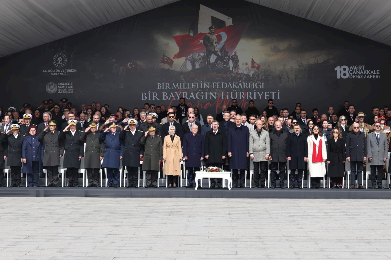 Şehitler Abidesi'nde Cumhurbaşkanı Yardımcısı Cevdet Yılmaz'ın katılımıyla gerçekleşen törenlerde Millî Savunma Bakanı Yaşar Güler, Kültür ve Turizm Bakanı Mehmet Nuri Ersoy ile Aile ve Sosyal Hizmetler Bakanı Mahinur Özdemir Göktaş da yer aldı.