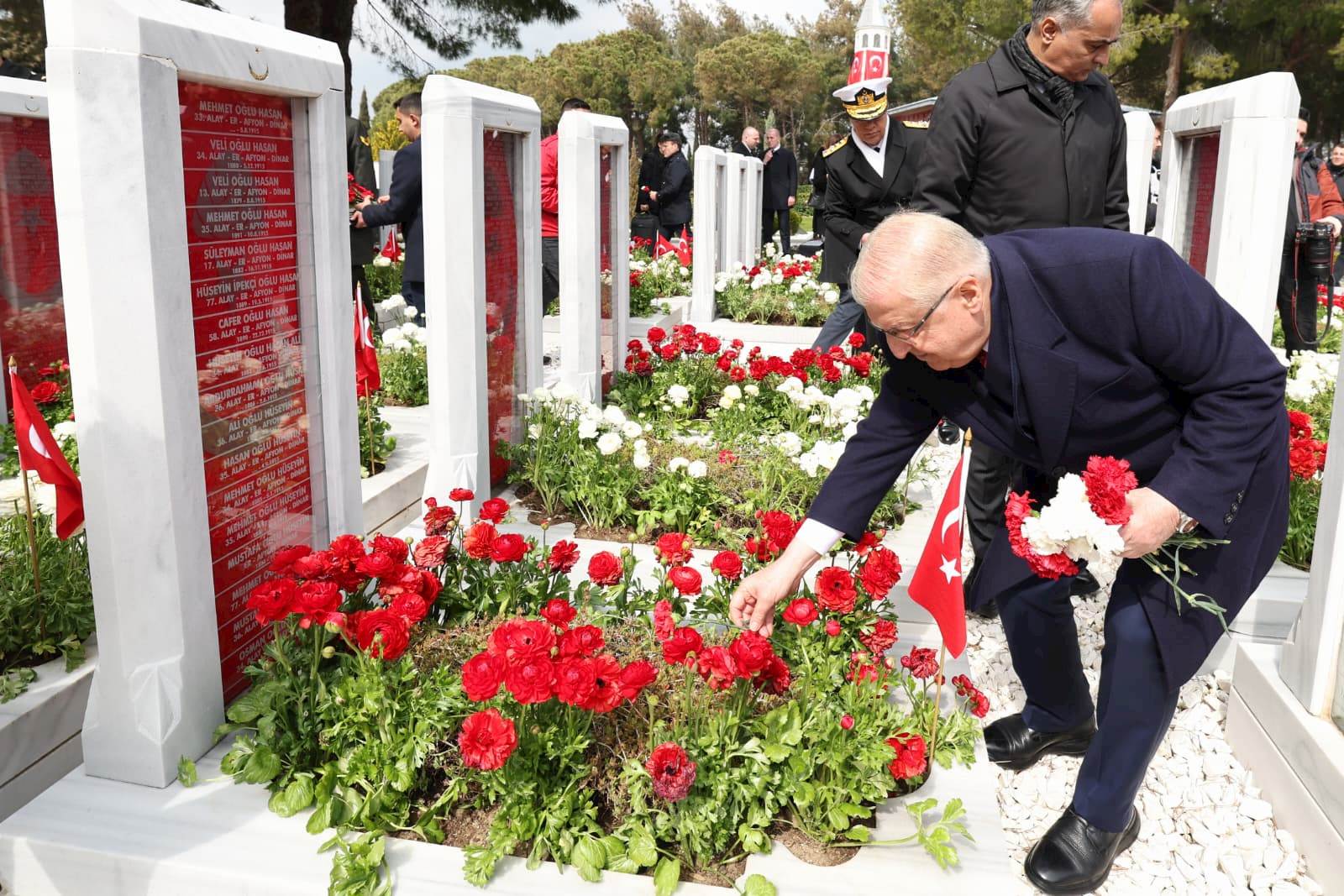 Törenlerin ardından Bakan Yaşar Güler ve beraberindeki TSK Komuta Kademesi, Şehitliği dolaşarak şanlı ecdadımızın mezarlarına karanfil bıraktı.