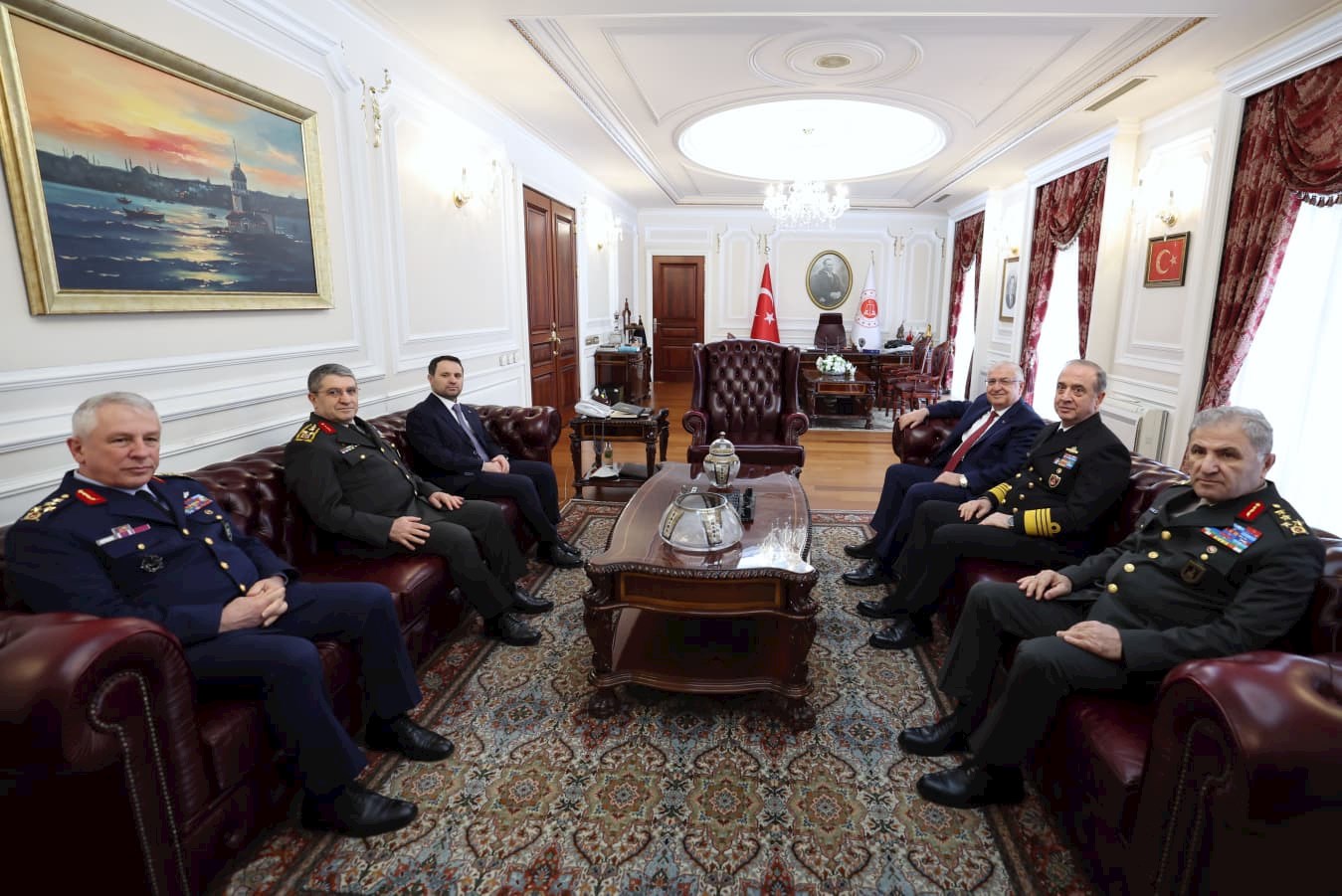 Millî Savunma Bakanı Yaşar Güler, beraberinde Genelkurmay Başkanı Orgeneral Selçuk Bayraktaroğlu, Deniz Kuvvetleri Komutanı Oramiral Ercüment Tatlıoğlu, Hava Kuvvetleri Komutanı Orgeneral Ziya Cemal Kadıoğlu, Kara Kuvvetleri Komutanı Orgeneral Metin Tokel ile Adalet Bakanı Akın Gürlek’e hayırlı olsun ziyareti gerçekleştirdi.