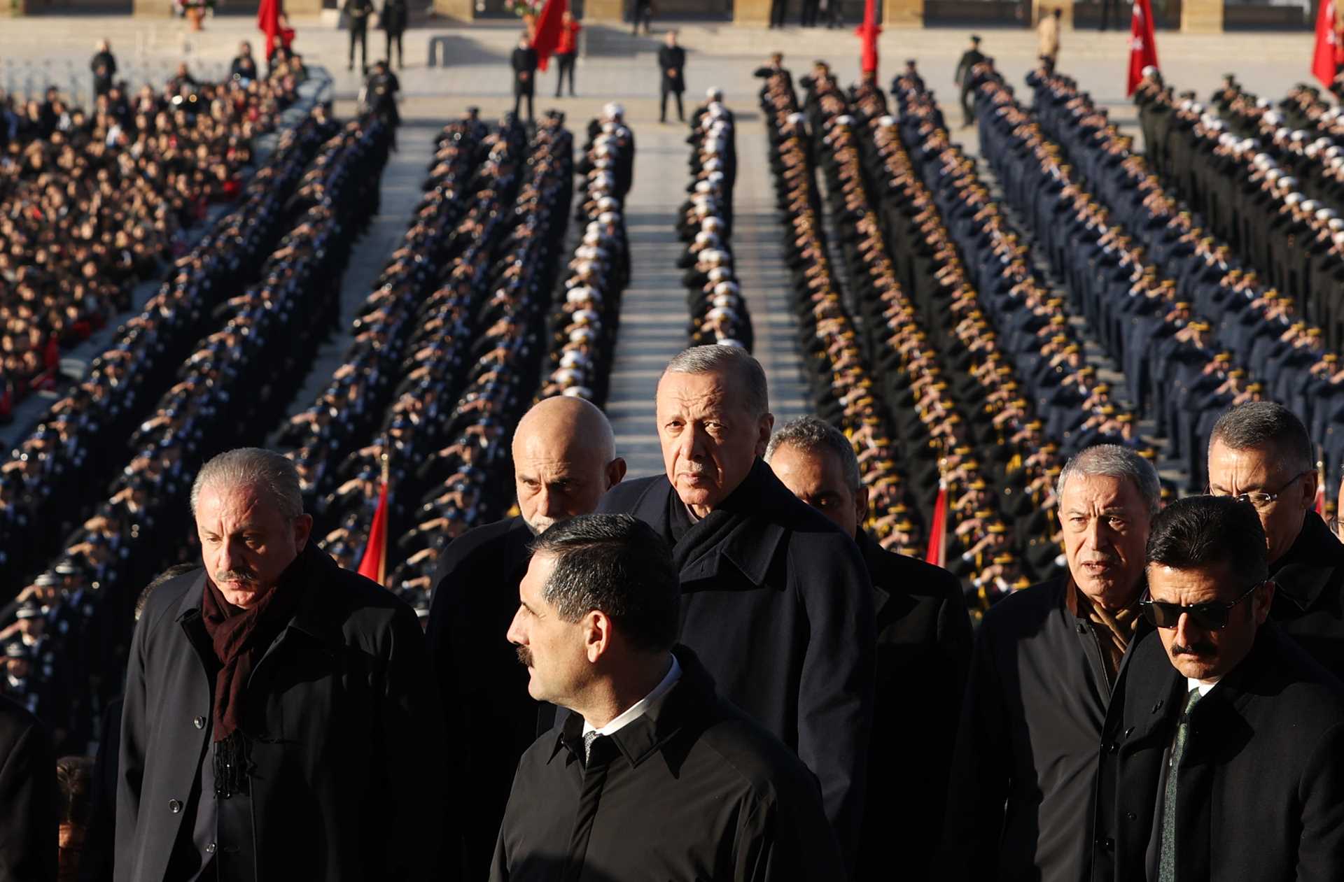 Cumhurbaşkanımız Sayın Erdoğan, kırmızı beyaz karanfillerden oluşan ay yıldızlı çelengi, Atatürk'ün mozolesine bıraktı. Atatürk'ün 84 yıl önce vefat ettiği saat olan 09.05'te saygı duruşunda bulunuldu ve ardından İstiklal Marşı okundu.