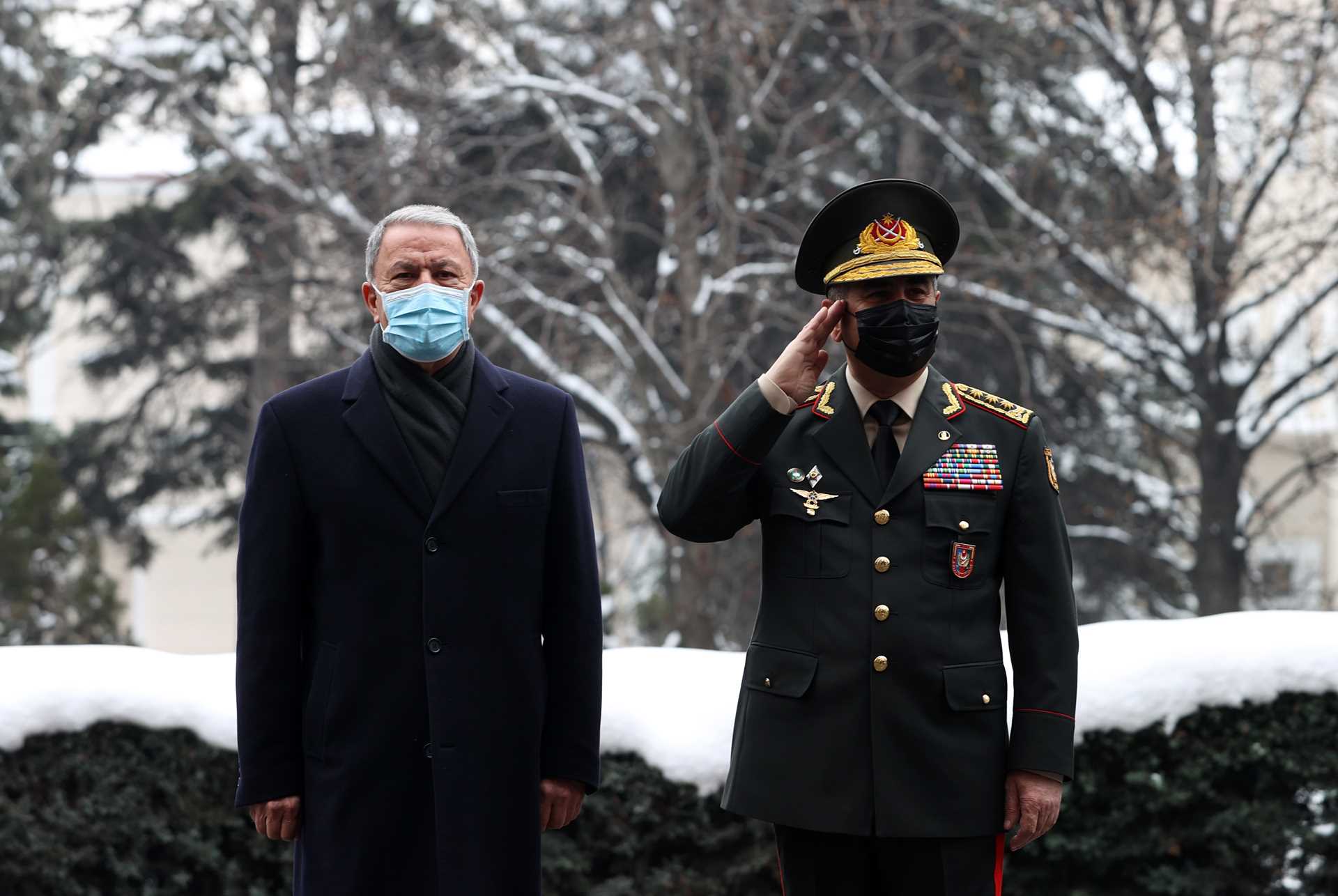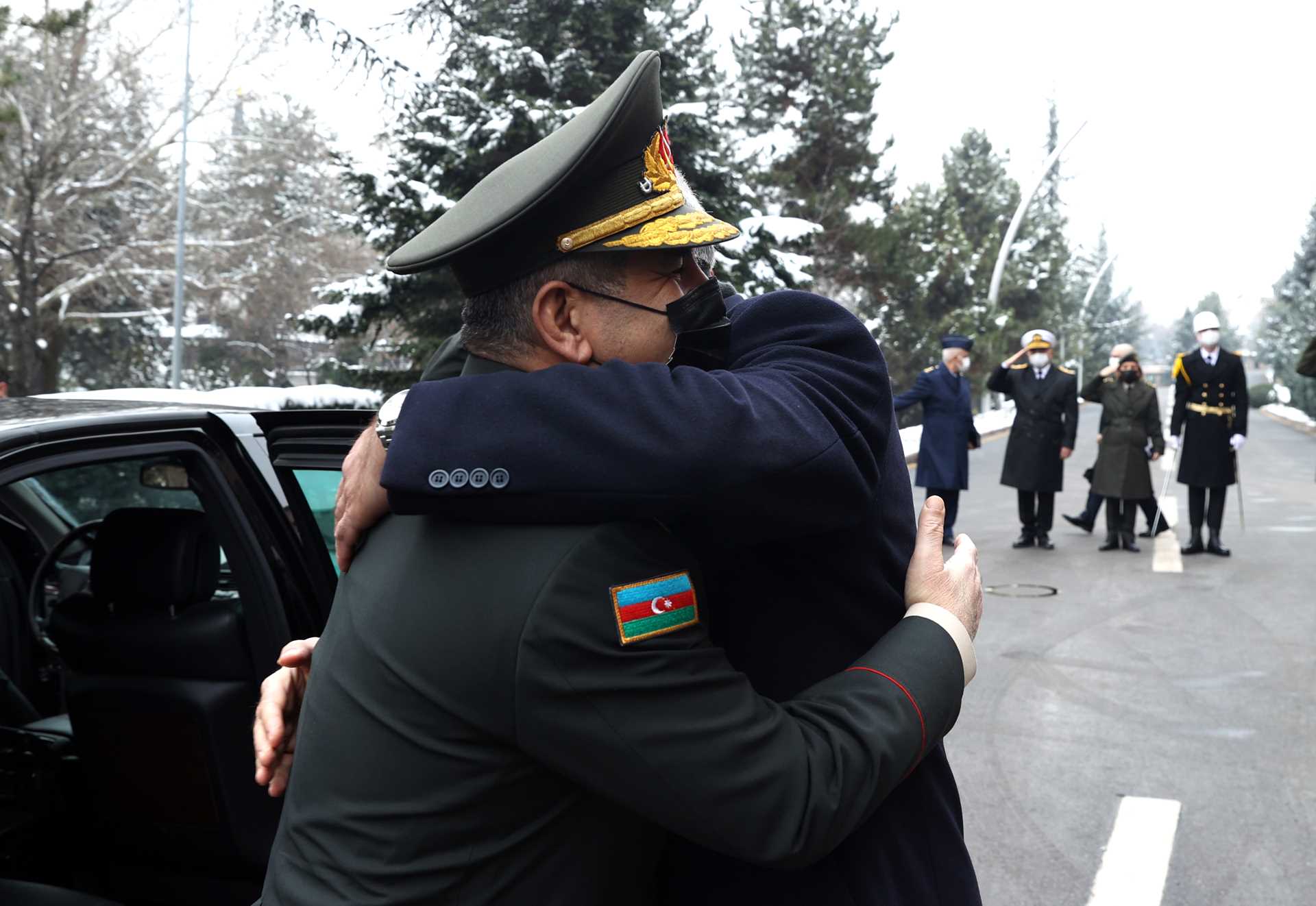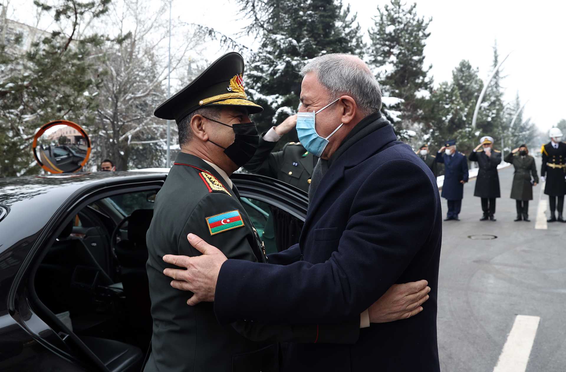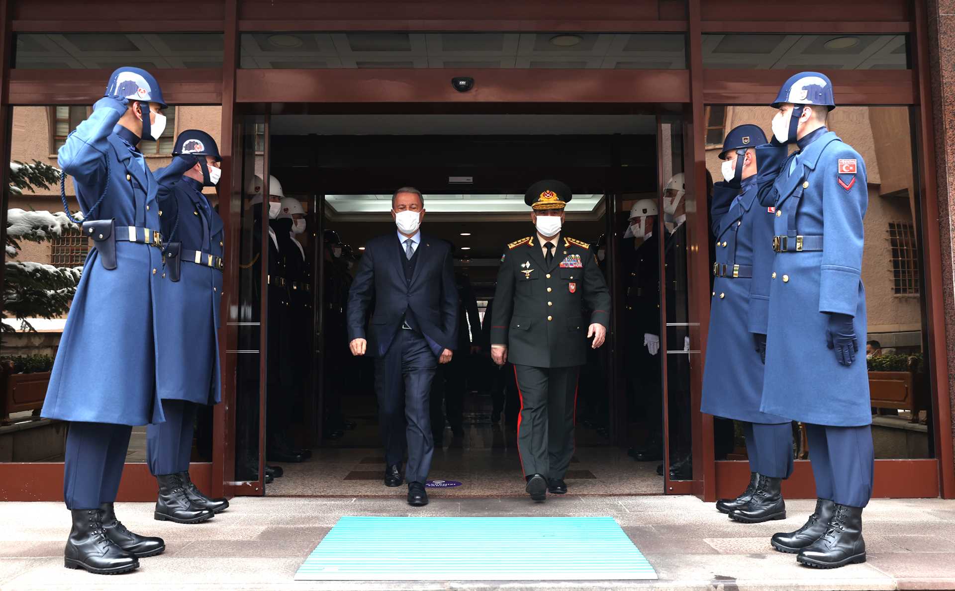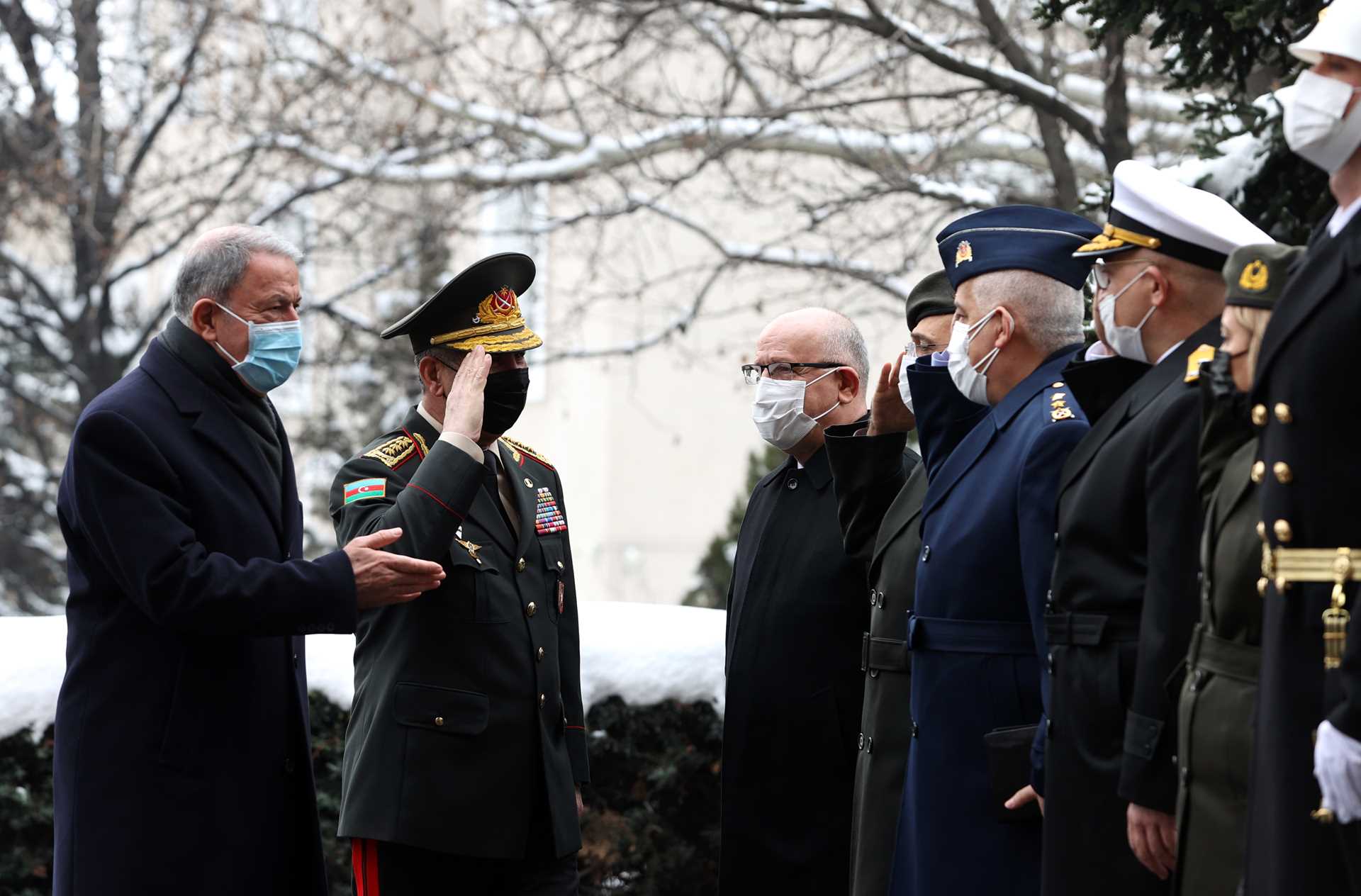 Tarih: 01.02.2022Millî Savunma Bakanı Hulusi Akar, resmî davetlisi olarak Türkiye'ye gelen Azerbaycan Savunma Bakanı Orgeneral Zakir Hasanov'u Millî Savunma Bakanlığında askerî törenle karşıladı.