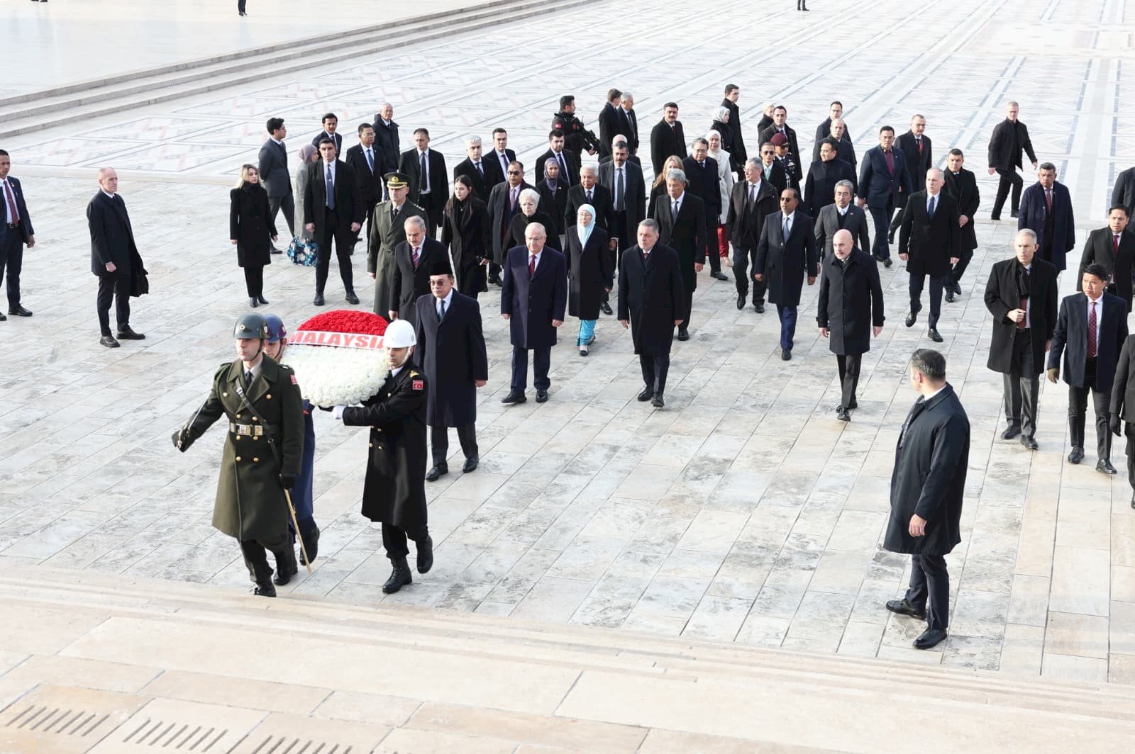 Tarih: 07.01.2026Millî Savunma Bakanı Yaşar Güler ve eşi Demet Güler Hanımefendi, Cumhurbaşkanımız Sayın Recep Tayyip Erdoğan’ın resmî davetlisi olarak ülkemize gelen Malezya Başbakanı Sayın Enver İbrahim ile eşi Wan Azizah İsmail Hanımefendi’nin Anıtkabir'i ziyaretine eşlik etti.