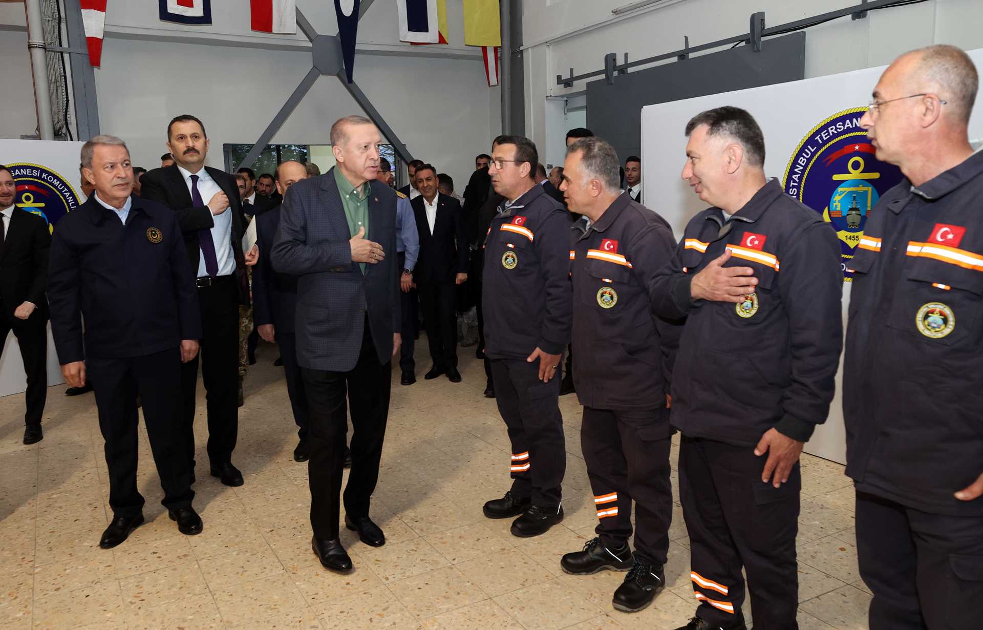 "Askerimizin sınırda silahla yaptığı hizmeti siz burada alın terinizle gerçekleştiriyorsunuz. Gemi sanayisi gibi hem emeğin hem teknolojinin yoğun olarak kullanıldığı bir alanda Türkiye, dünyanın sayılı ülkeleri arasına girmeyi başardı. Sizlerin ürettiği gemiler ve diğer savunma sanayisi ürünleri Türkiye'nin kendi ihtiyaçlarını karşılamanın ötesinde ihracatımızın önemli kalemleri arasında yer alıyor. Korvetleriniz, fırkateynleriniz vesaire Türkiye'nin savunma sanayisinin bugünlere gelmesinde katkısı olan kamu kuruluşlarıyla, özel sektörüyle, mühendisiyle, işçisiyle, herkese, şahsım, tüm kabine üyelerim ve milletim adına sizlere şükranlarımı sunuyorum."