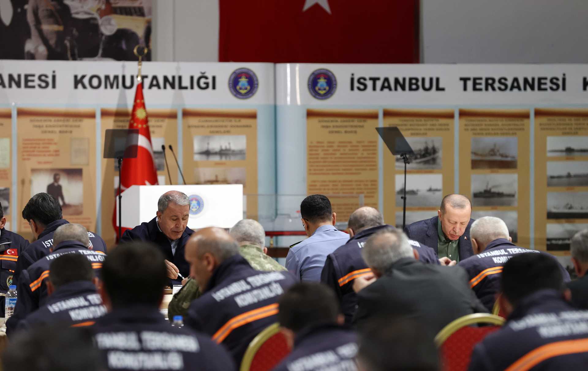 Tarih: 01.05.2022Cumhurbaşkanımız Sayın Recep Tayyip Erdoğan, Tuzla'daki İstanbul Tersanesi Komutanlığında düzenlenen iftarda işçilerimizle bir araya geldi. Çalışma ve Sosyal Güvenlik Bakanı Vedat Bilgin ile Ulaştırma ve Altyapı Bakanı Adil Karaismailoğlu’nun da katıldığı iftarda Cumhurbaşkanımız Sn. Erdoğan’ı Millî Savunma Bakanı Hulusi Akar beraberinde Genelkurmay Başkanı Org. Yaşar Güler, Kuvvet Komutanları ve Bakan Yardımcısı Muhsin Dere ile karşıladı.