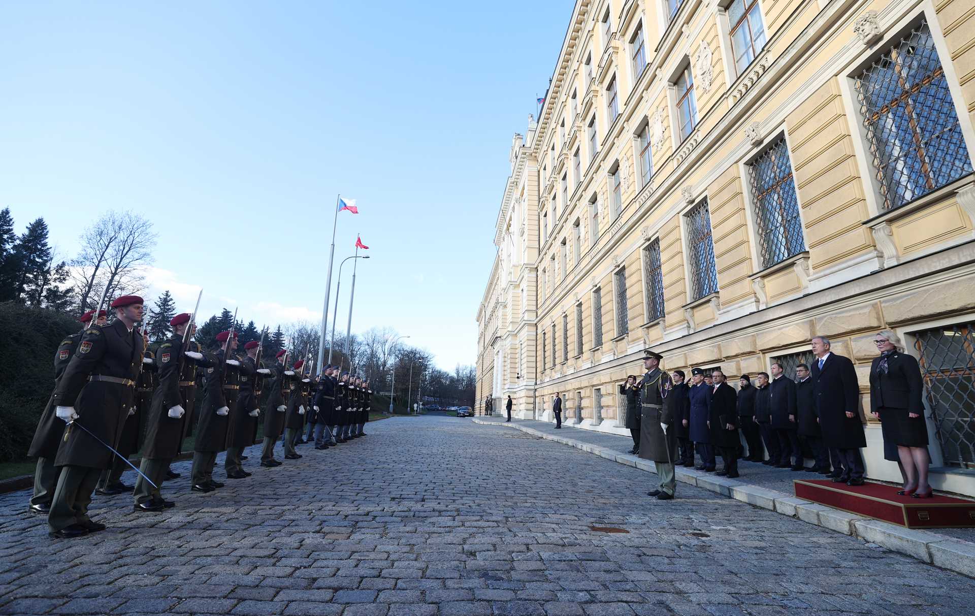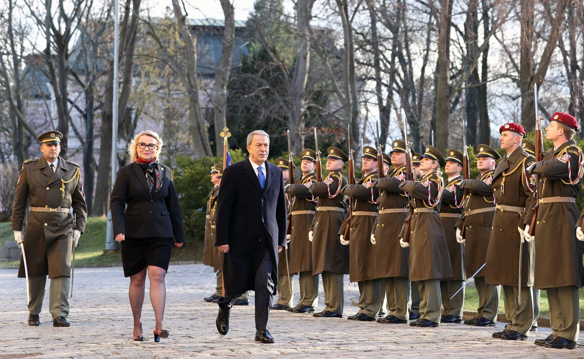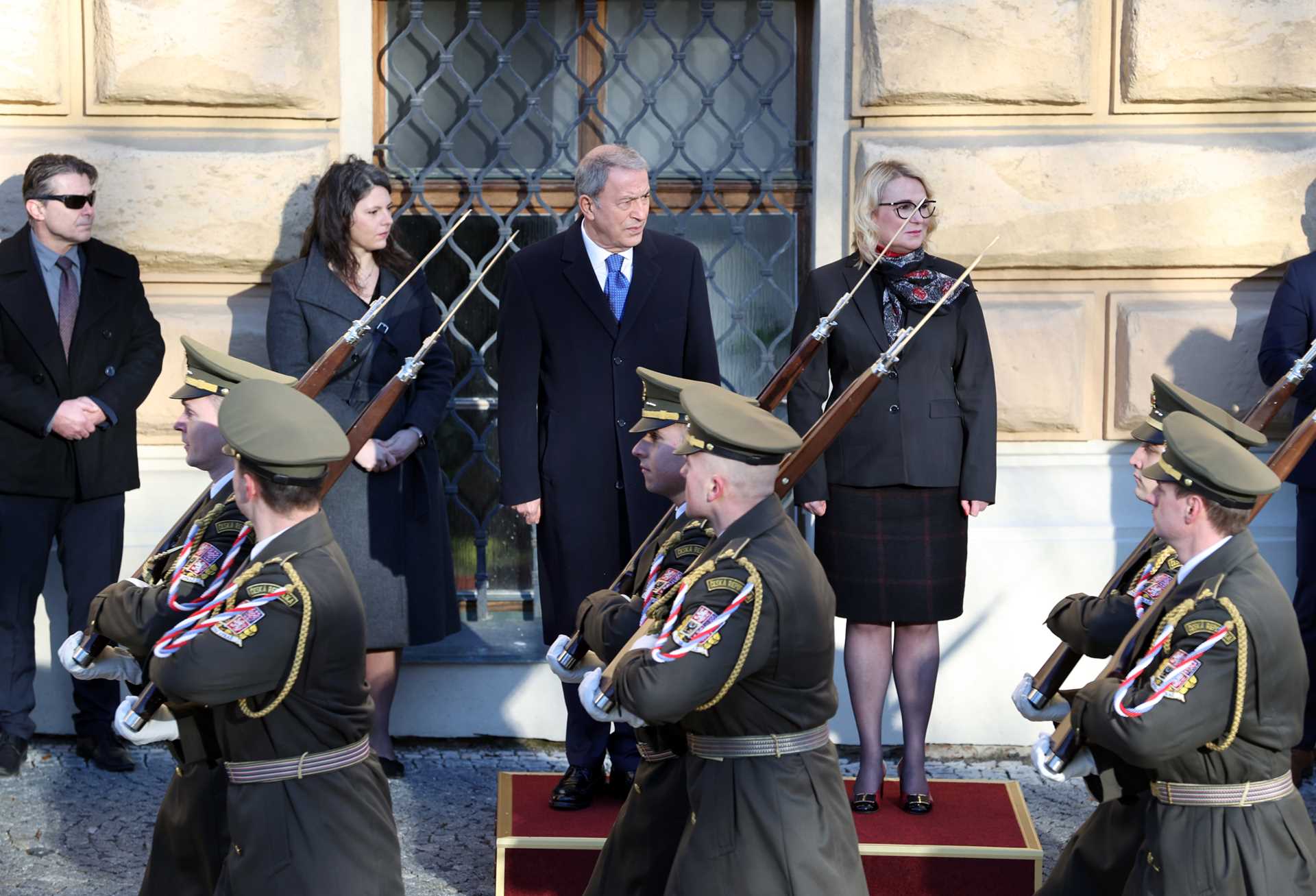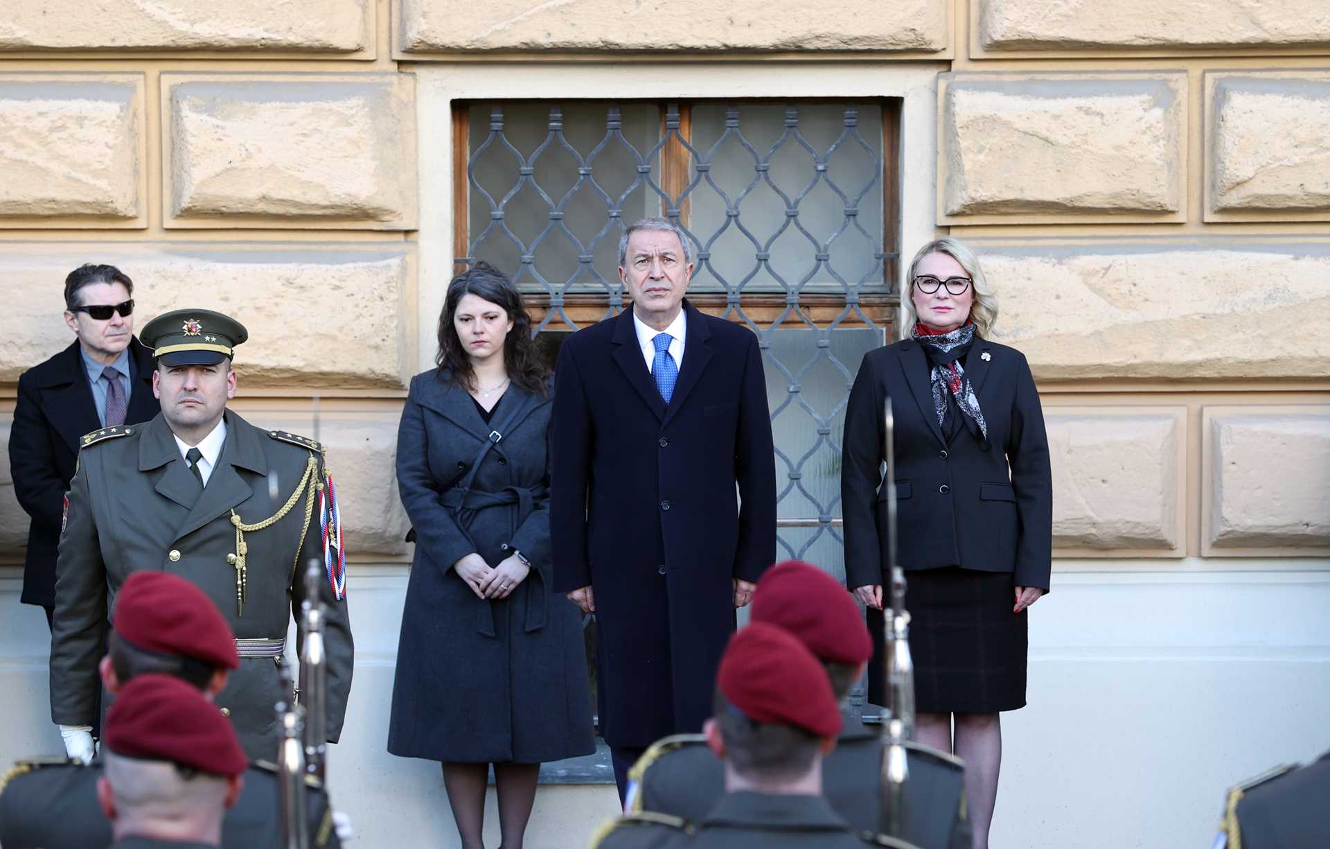 Bakan Jana Cernochova tarafından askerî törenle karşılanan Bakan Akar, tören kıtasını selamladı. Askerî bandonun iki ülke ulusal marşlarını çalmasının ardından tören, resmî geçitle sona erdi.