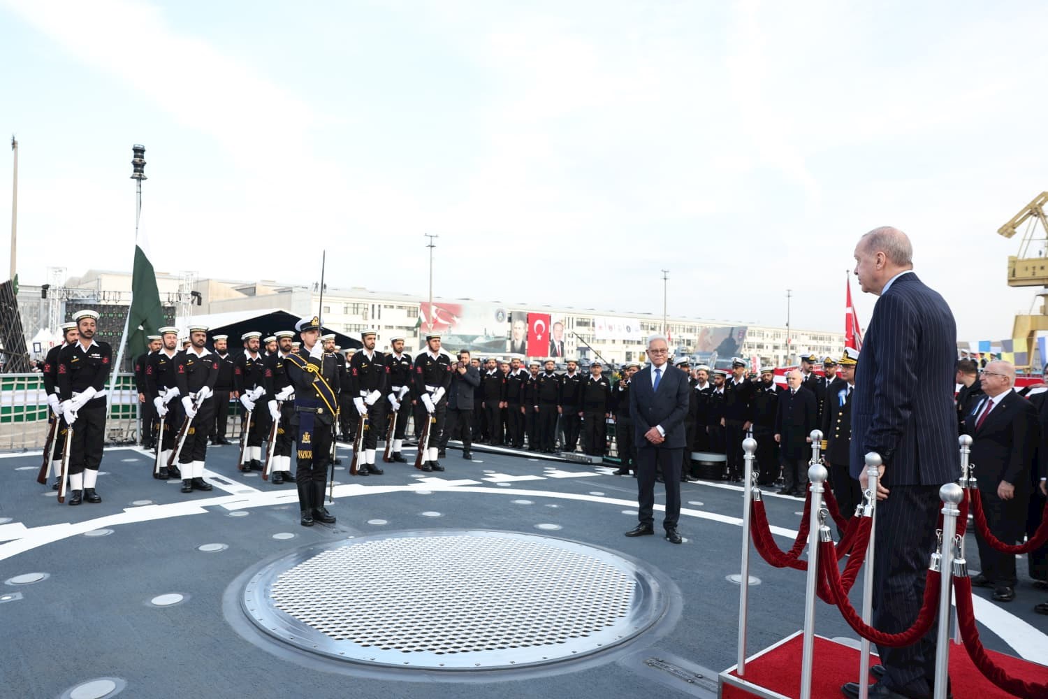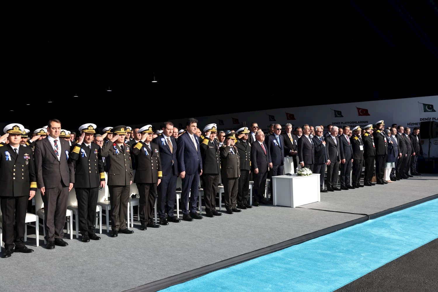 Pakistan Deniz Kuvvetleri Komutanı Oramiral Naveed Ashraf’ın da bulunduğu “Deniz Platformlarının Hizmete Giriş, Bayrak Çekme ve İlk Sac Kesim Töreni”nde;