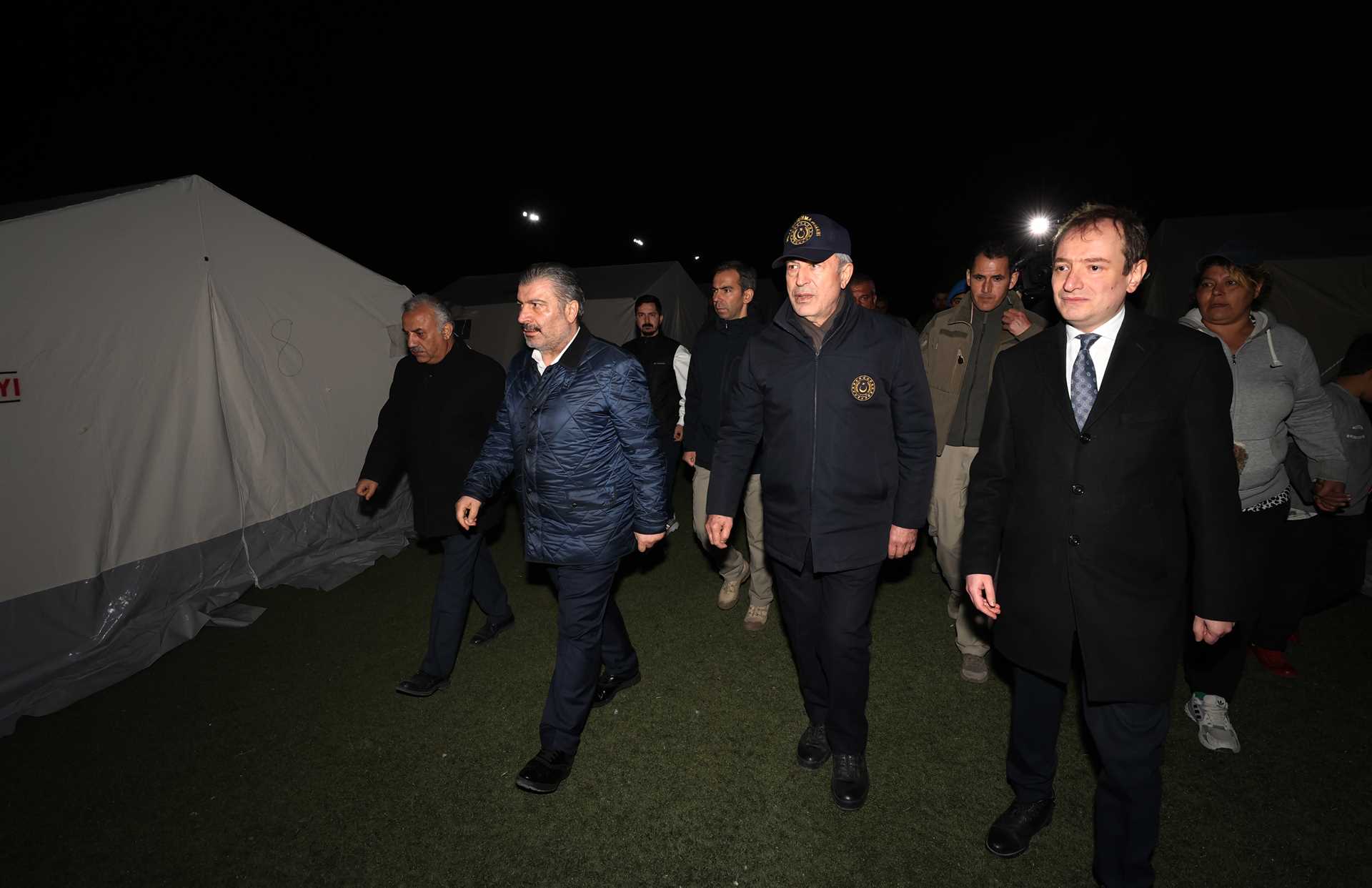 Tarih: 19.02.2023Millî Savunma Bakanı Hulusi Akar ve Sağlık Bakanı Fahrettin Koca Antakya ve Altınözü’ndeki Çalışmaları İnceledi, Vatandaşlarla Bir Araya Geldi