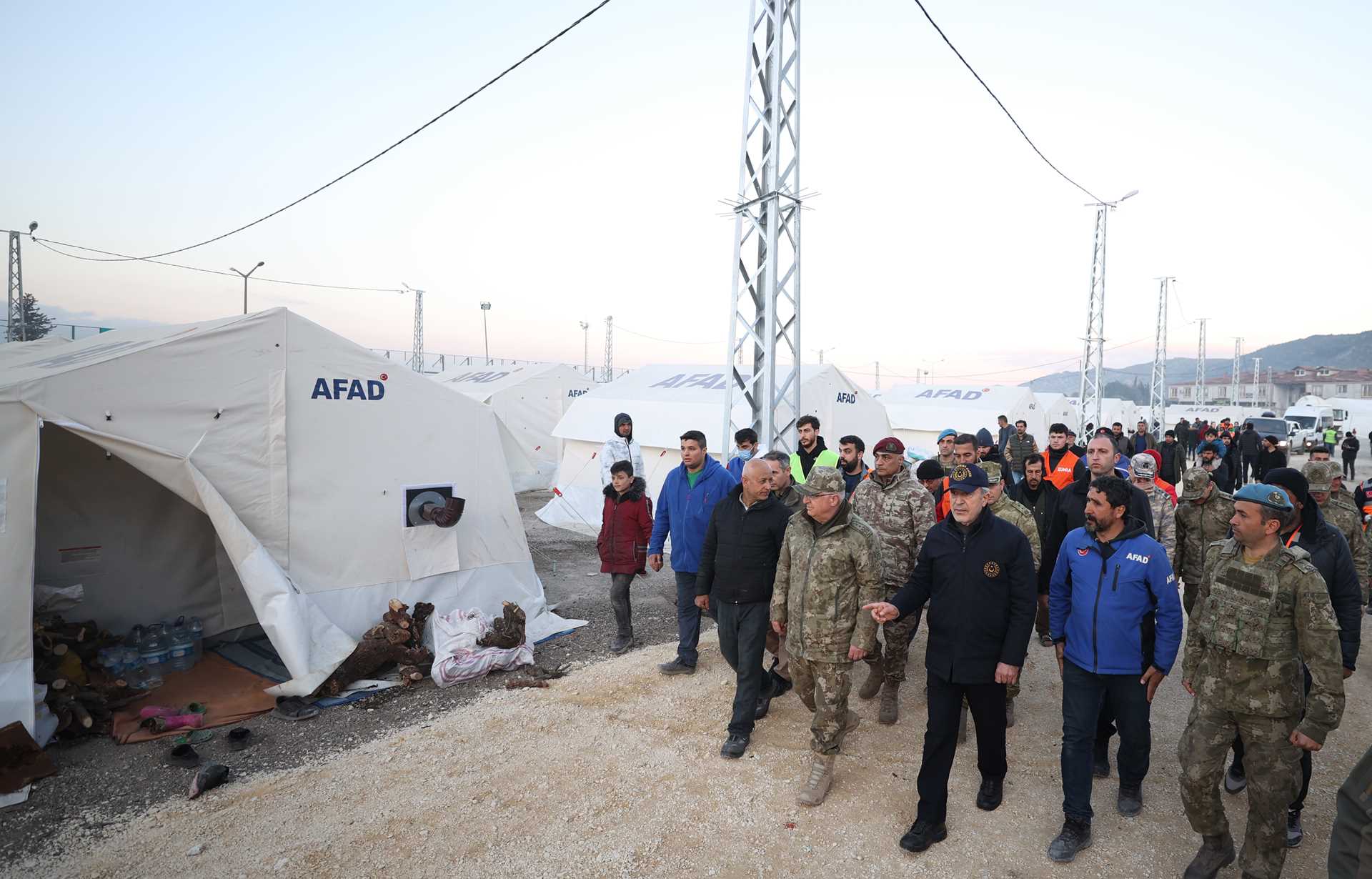 Burada yemek yiyen vatandaşlarla ve ekiplerle görüşen Bakan Akar daha sonra buradan sanayi bölgesi yakınlarında kurulan çadır kenti ziyaret etti. AFAD yetkililerinden çadır kent hakkında bilgi alan Bakan Akar, bölgenin güvenliğinden sorumlu Mehmetçik’ten çalışmalara ilişkin brifing aldı, talimat verdi.