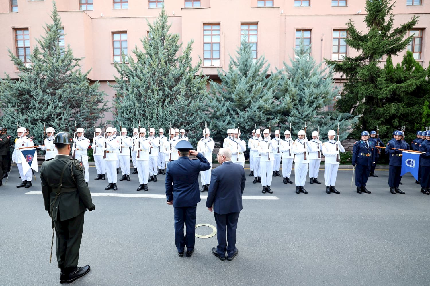 Tarih: 02.10.2025Millî Savunma Bakanı Yaşar Güler, resmî ziyaret kapsamında Ankara’ya gelen İran Savunma ve Silahlı Kuvvetler Lojistik Bakanı Aziz Nasirzade’yi Millî Savunma Bakanlığında askerî törenle karşıladı.