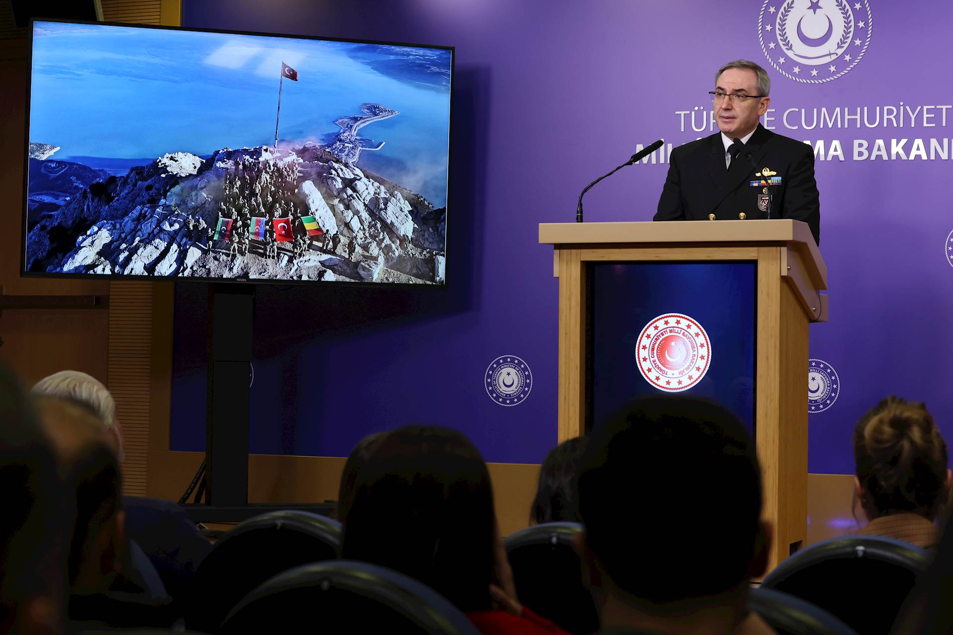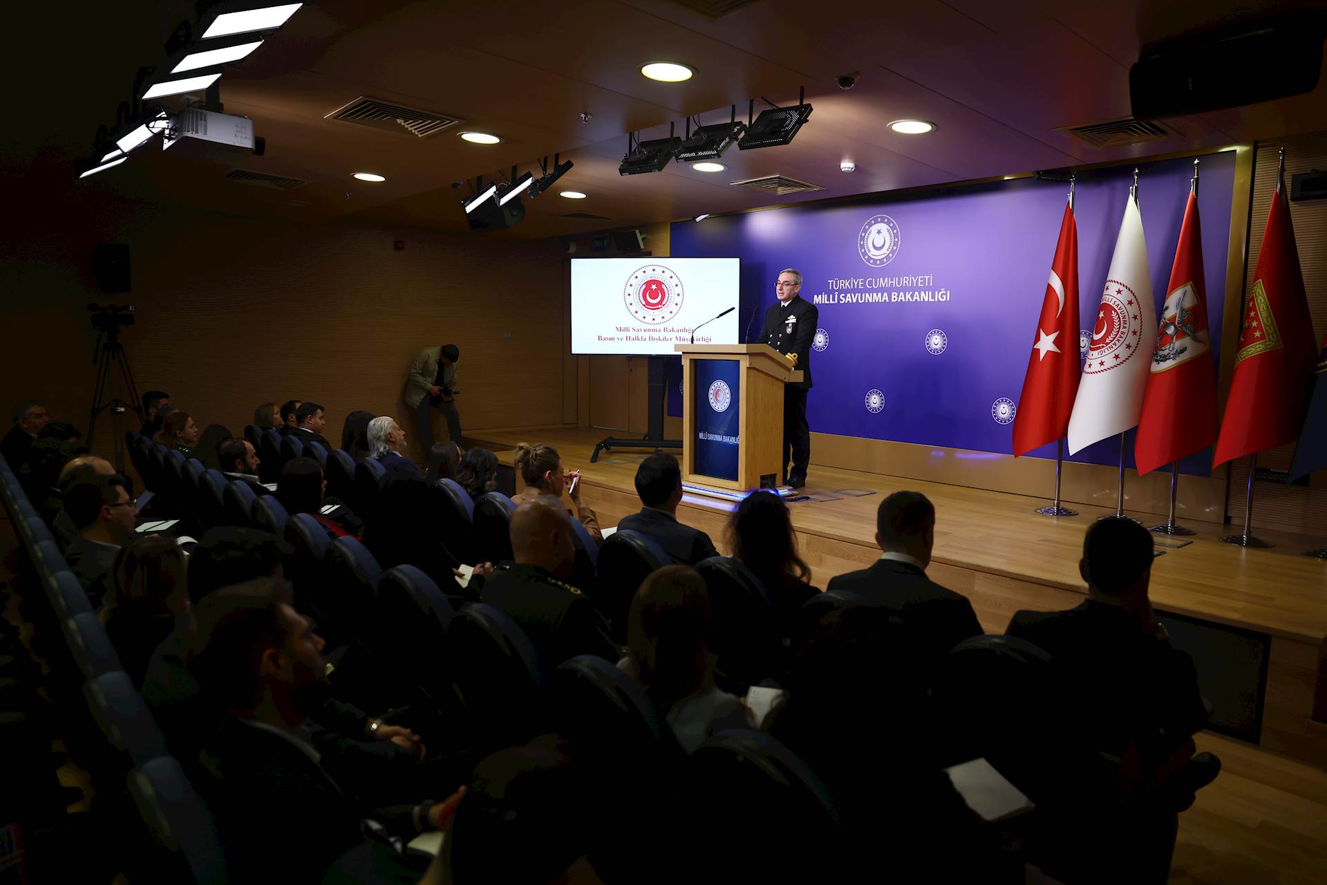 Millî Savunma Bakanlığının faaliyetlerinin anlatıldığı Haftalık Basın Bilgilendirme Toplantısı Bakanlık Sözcüsü, Basın ve Halkla İlişkiler Müşaviri Tuğamiral Zeki Aktürk tarafından gerçekleştirildi.