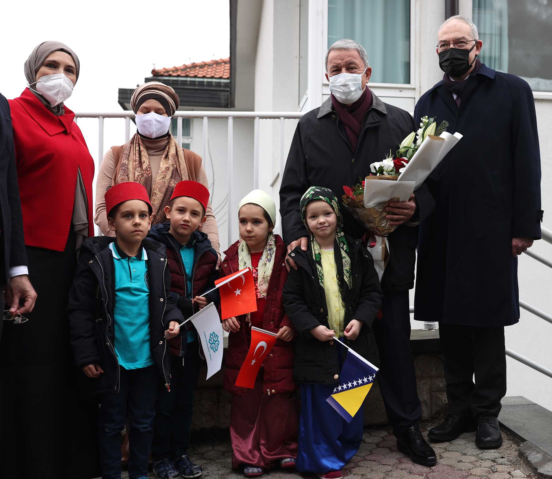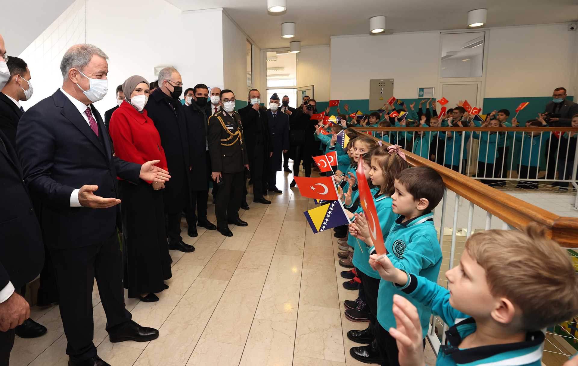Okula gelişinde Bakan Akar'a yöresel kıyafetli anaokulu öğrencileri çiçek hediye etti. Bakan Akar, binaya girişinde ise ilkokul öğrencilerinin sürpriziyle karşılaştı. Ellerinde Türk ve Bosna Hersek bayrakları taşıyan minikler, Bakan Akar'ı "merhaba" adlı şarkıyı söyleyerek selamladı.