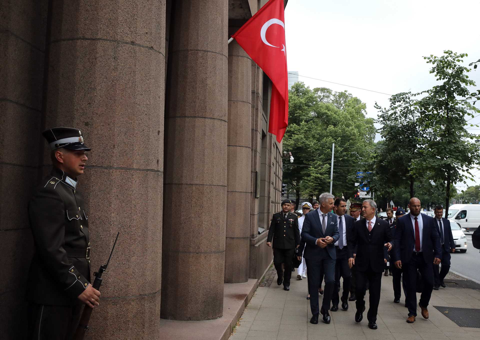 Tarih: 28.07.2022Millî Savunma Bakanı Hulusi Akar, resmî ziyaret kapsamında gittiği Letonya’nın başkenti Riga’da “Kahramanlar Mezarlığı”nın ardından Letonya Savunma Bakanlığına geçti.