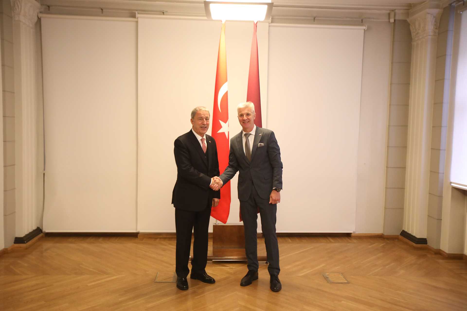 Letonya Başbakan Yardımcısı ve Savunma Bakanı Artis Pabriks ile baş başa görüşen Bakan Akar daha sonra Şeref Defteri’ni imzaladı.