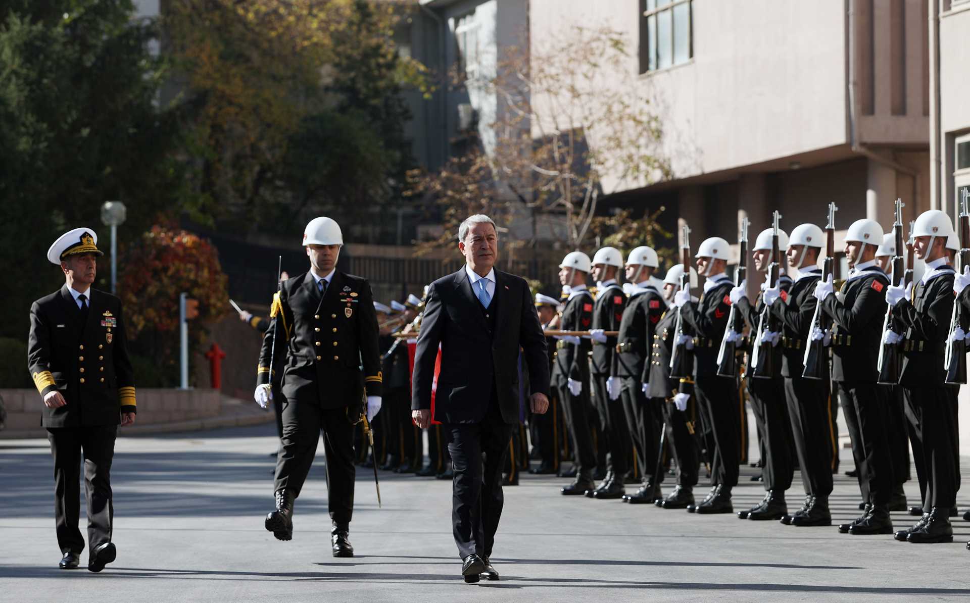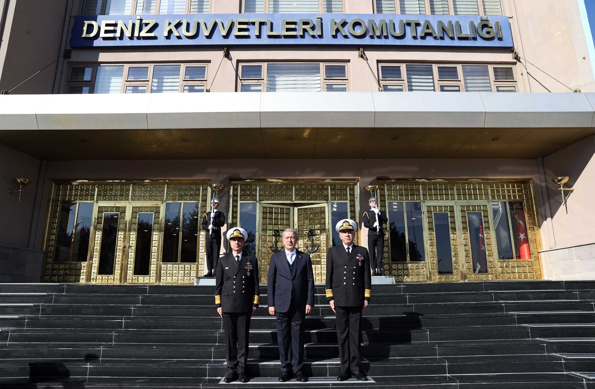 Toplantı için Deniz Kuvvetleri Komutanlığına gelişinde askerî törenle karşılanan Bakan Akar, Onur Kıtasını selamlayarak Şeref Defteri’ni imzaladı. Bakan Akar, Cumhurbaşkanımız Sayın Recep Tayyip Erdoğan başkanlığında ağustosta yapılan Yüksek Askerî Şura Toplantısı ile göreve başlayan Deniz Kuvvetleri Komutanlığının yeni komuta kademesine de görevlerinde başarı dileklerini iletti.