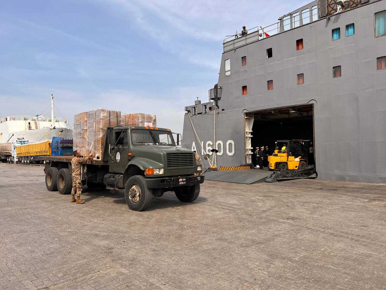 Date: 31.03.2022Millî Savunma Bakanlığı tarafından Lübnan Silahlı Kuvvetlerine teslim edilmek üzere hazırlanan 81 ton ve 148 palet yardım malzemesi, TCG YILDIRIM fırkateynimizin refakatinde TCG İSKENDERUN gemimiz tarafından Beyrut’a ulaştırıldı. Karşılama töreninde, Beyrut Büyükelçimiz Ali Barış Ulusoy, Lübnan Genelkurmay Başkanı Temsilcisi Tümg. Elias Yusuf, Beyrut Askerî Ataşemiz Alb. Hüseyin Başaran ve yerel yetkililer yer aldı.