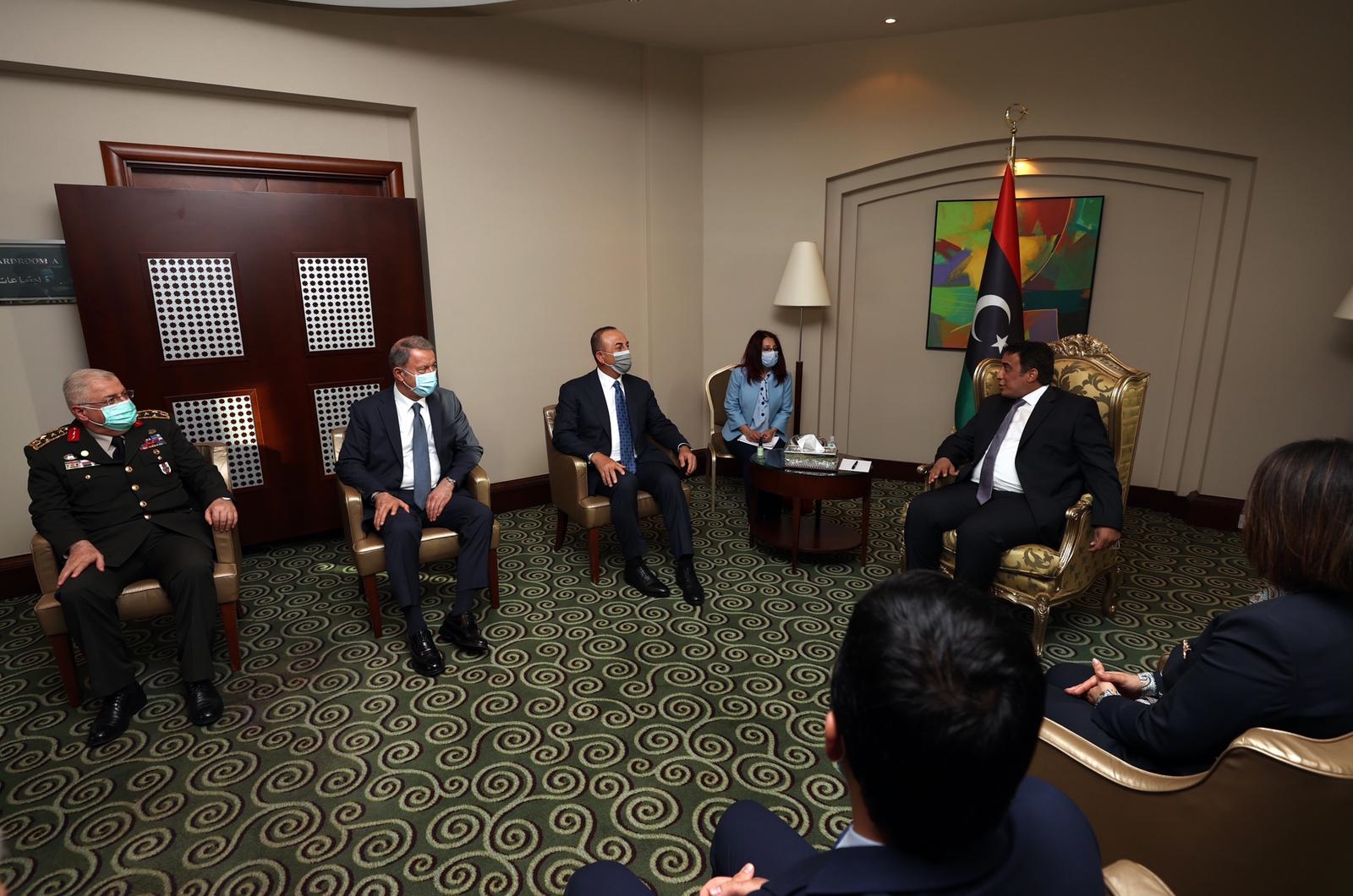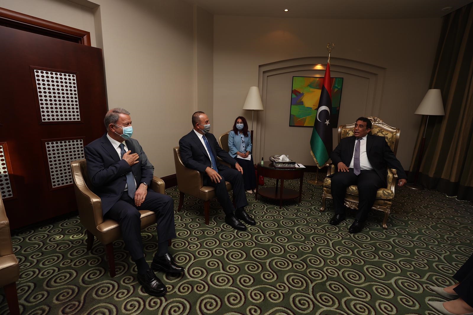 Libya Başkanlık Konseyi Başkanı Muhammed El-Menfi Millî Savunma Bakanı Hulusi Akar ve Dışişleri Bakanı Mevlüt Çavuşoğlu’nu Kabul Etti