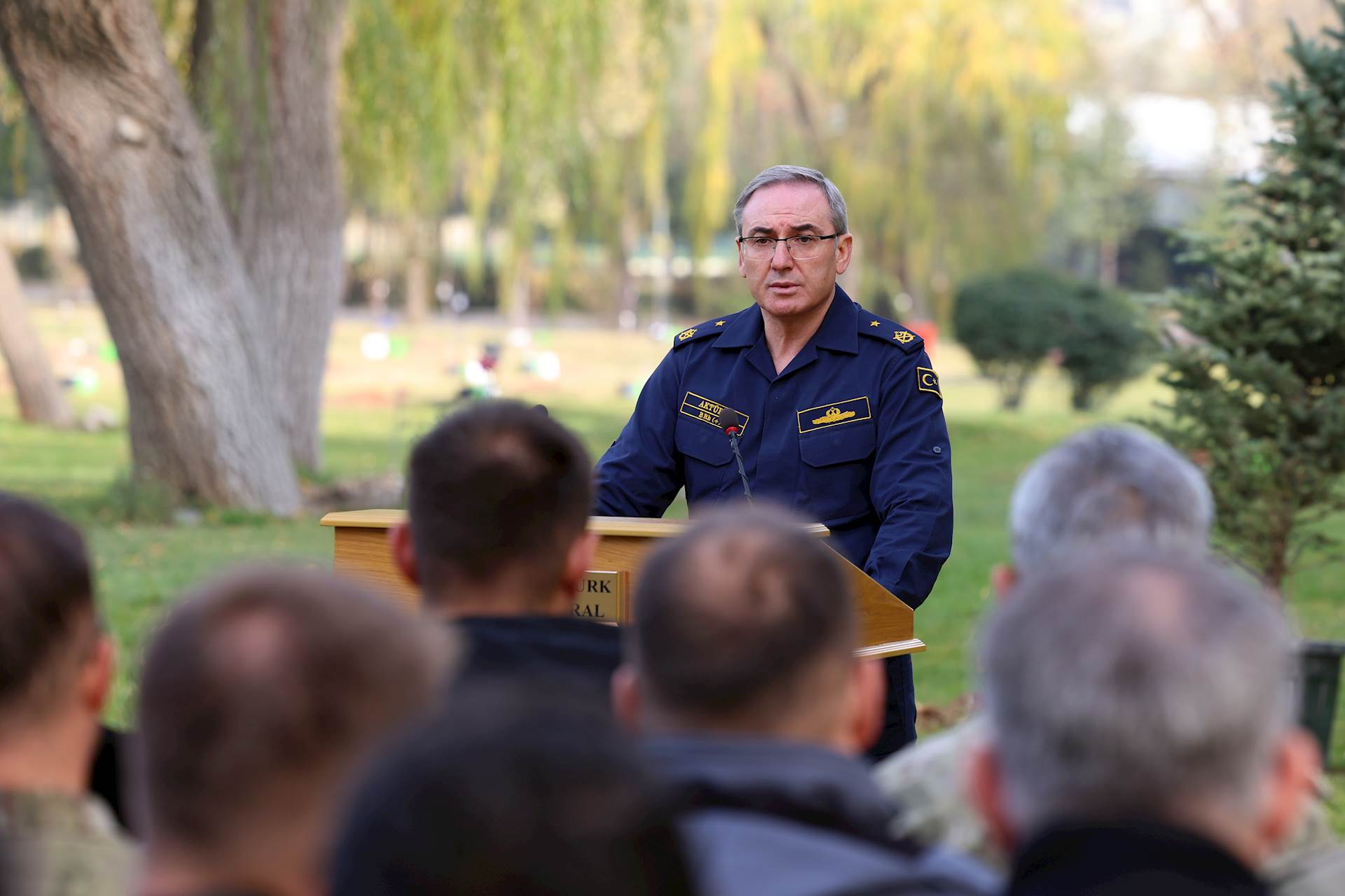 11 Kasım’da Azerbaycan-Gürcistan sınırında düşen C-130 askerî kargo uçağımızda şehit olan kahraman silah arkadaşlarımız için 14 Kasım’da Mürted Hava Meydan Komutanlığı/Ankara’da düzenlenen uğurlama törenine, beraberinde TSK Komuta Kademesi ile katılan Sayın Bakanımız,