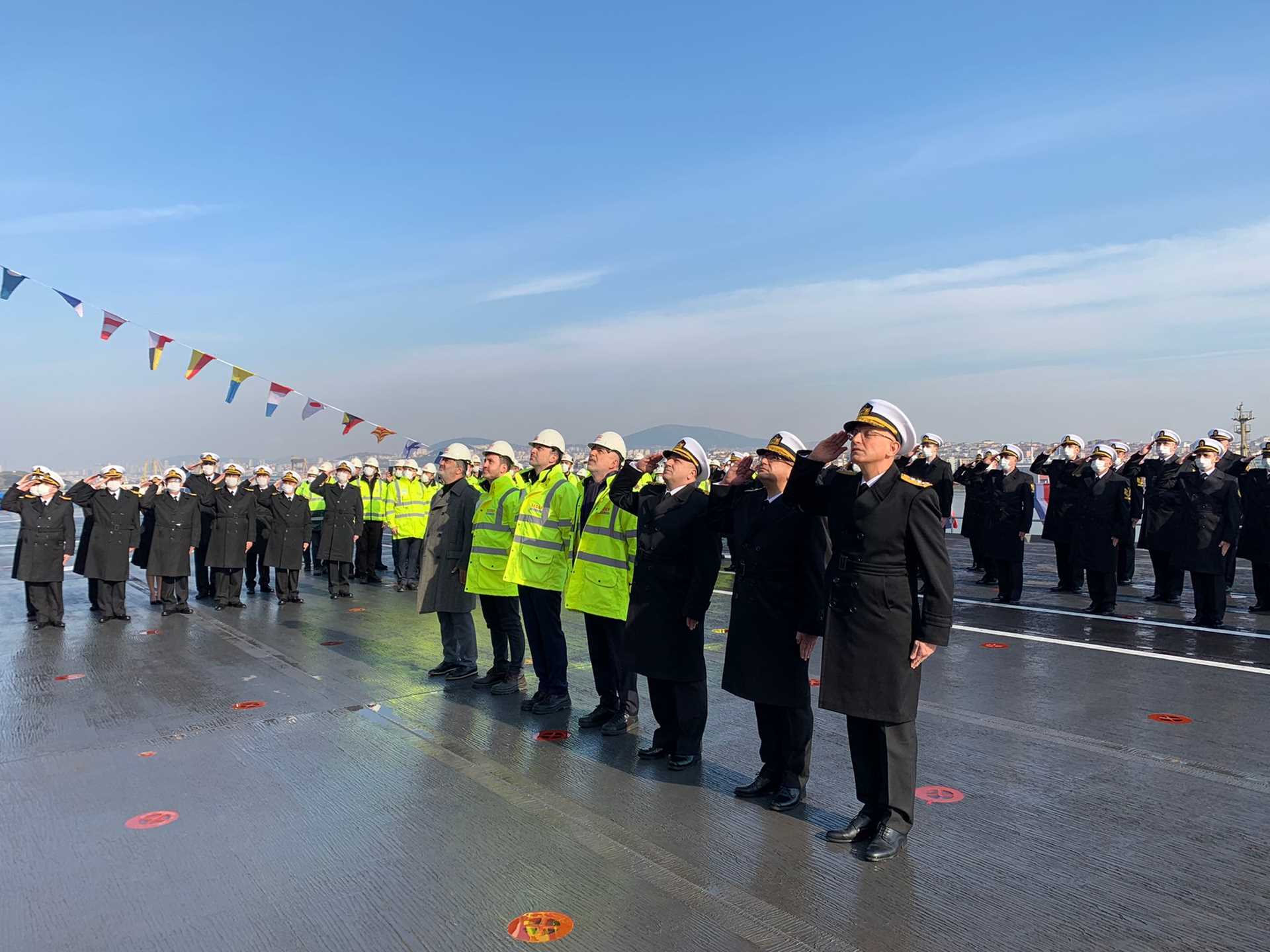 Tarih: 04.03.202217 Nisan 2016'da inşasına başlanan ve 2022 yılının Aralık ayında hizmete girmesi planlanan 232 metre boyu ve 27.000 ton deplasmanı ile Deniz Kuvvetlerimizin en büyük gemisi olacak Çok Maksatlı Amfibi Gemi LHD ANADOLU’ya törenle Türk Bayrağı çekildi.