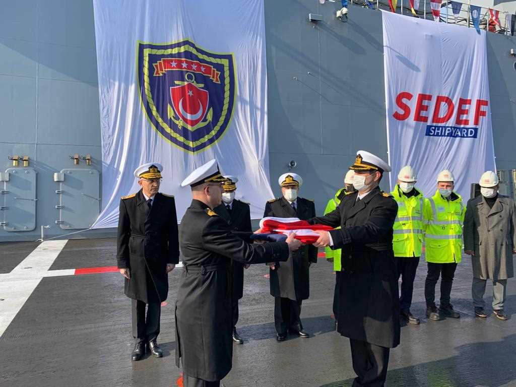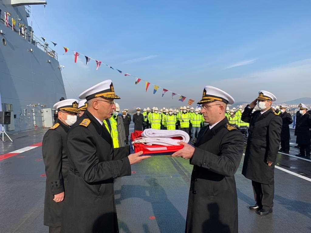 Deniz Kuvvetlerimizin En Büyük Gemisi Olacak LHD ANADOLU’ya Törenle Türk Bayrağı Çekildi