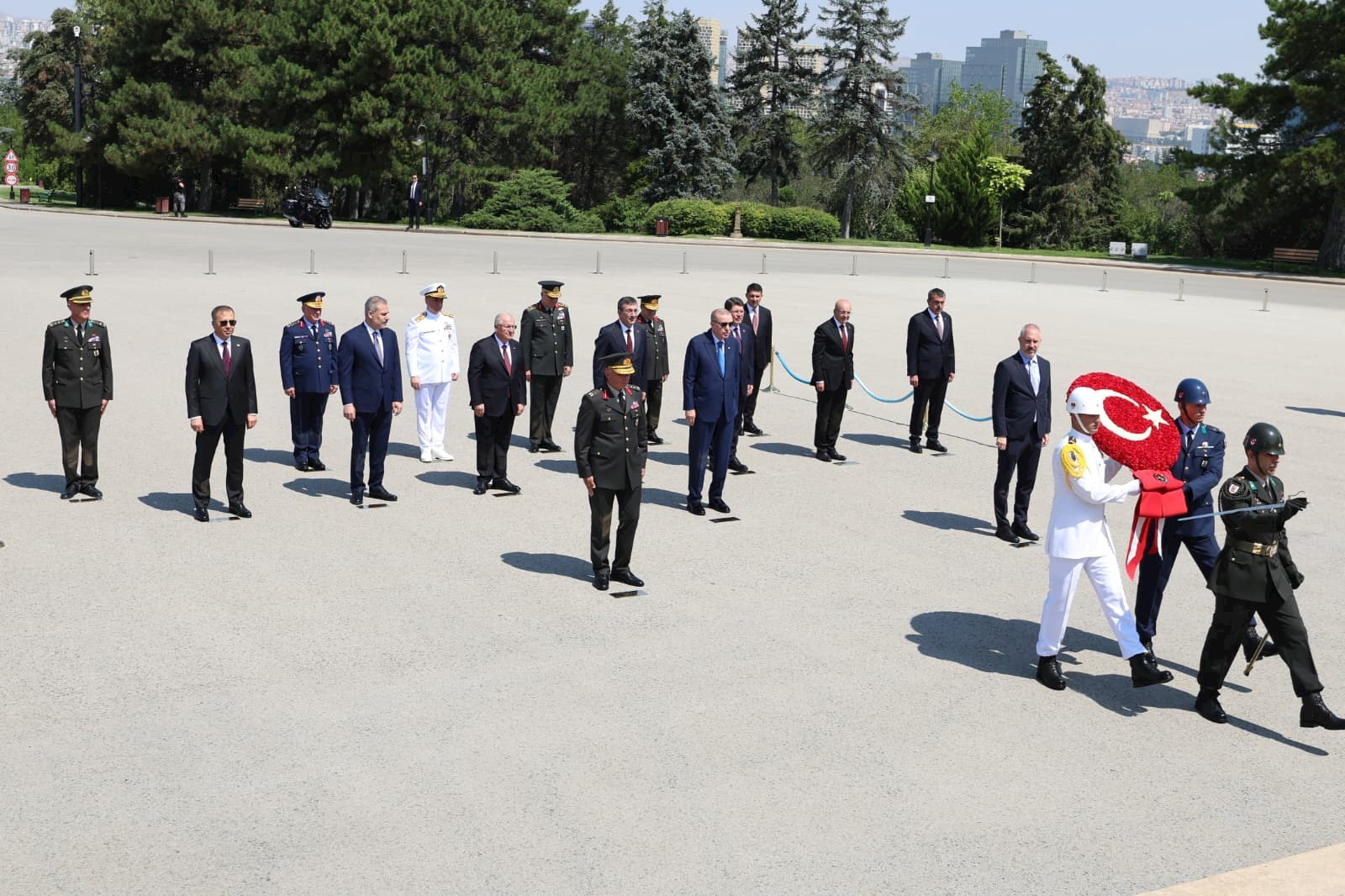 Tarih: 05.08.2025Yüksek Askerî Şûra (YAŞ) Toplantısı dolayısıyla Cumhurbaşkanımız Sayın Recep Tayyip Erdoğan başkanlığındaki Şûra Üyeleri, Anıtkabir’i ziyaret etti. Ziyarette Cumhurbaşkanımız Sayın Recep Tayyip Erdoğan’ın beraberinde Cumhurbaşkanı Yardımcısı Cevdet Yılmaz, Adalet Bakanı Yılmaz Tunç, Dışişleri Bakanı Hakan Fidan, Hazine ve Maliye Bakanı Mehmet Şimşek, İçişleri Bakanı Ali Yerlikaya, Millî Eğitim Bakanı Yusuf Tekin, Millî Savunma Bakanı Yaşar Güler, Genelkurmay Başkanı Orgeneral Metin Gürak, Deniz Kuvvetleri Komutanı Oramiral Ercüment Tatlıoğlu, Kara Kuvvetleri Komutanı Orgeneral Selçuk Bayraktaroğlu ve Hava Kuvvetleri Komutanı Orgeneral Ziya Cemal Kadıoğlu yer aldı.