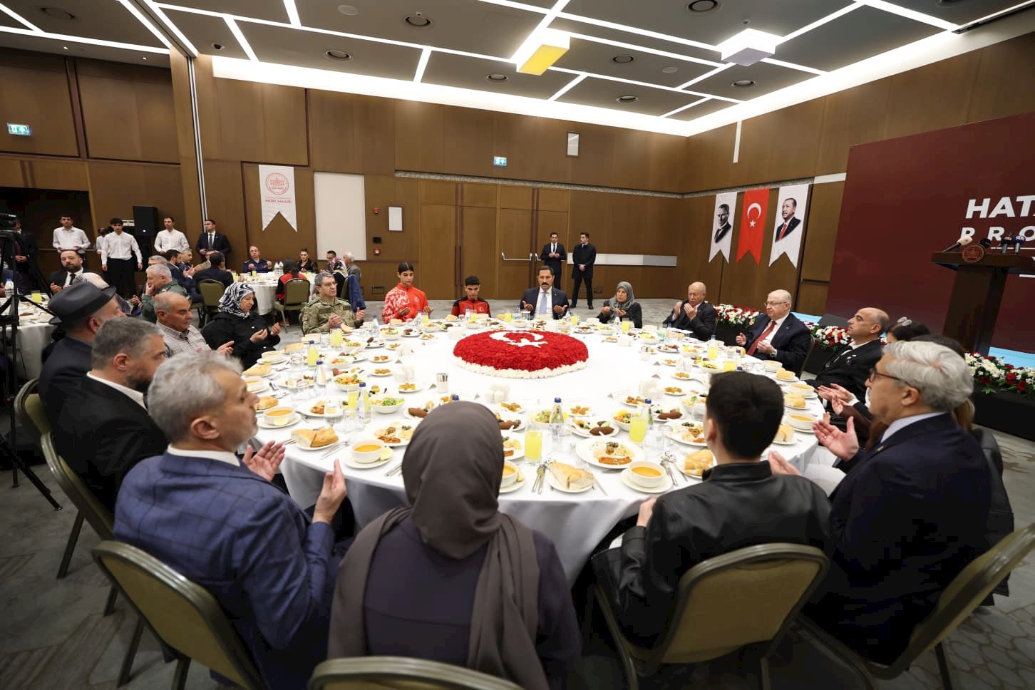 Medeniyetlerin buluşma noktası, hoşgörünün, sevginin ve saygının şehri Hatay’ımızda huzur ve bereketle geçen mübarek Ramazan ayının bu son iftarında sizlerle bir arada bulunmaktan büyük bir mutluluk duyuyorum. Sözlerimin başında yarın idrak edeceğimiz mübarek Ramazan Bayramınızı en içten dileklerimle kutluyor, bu vesileyle Sayın Cumhurbaşkanımızın selamlarını da sizlere iletmek istiyorum.