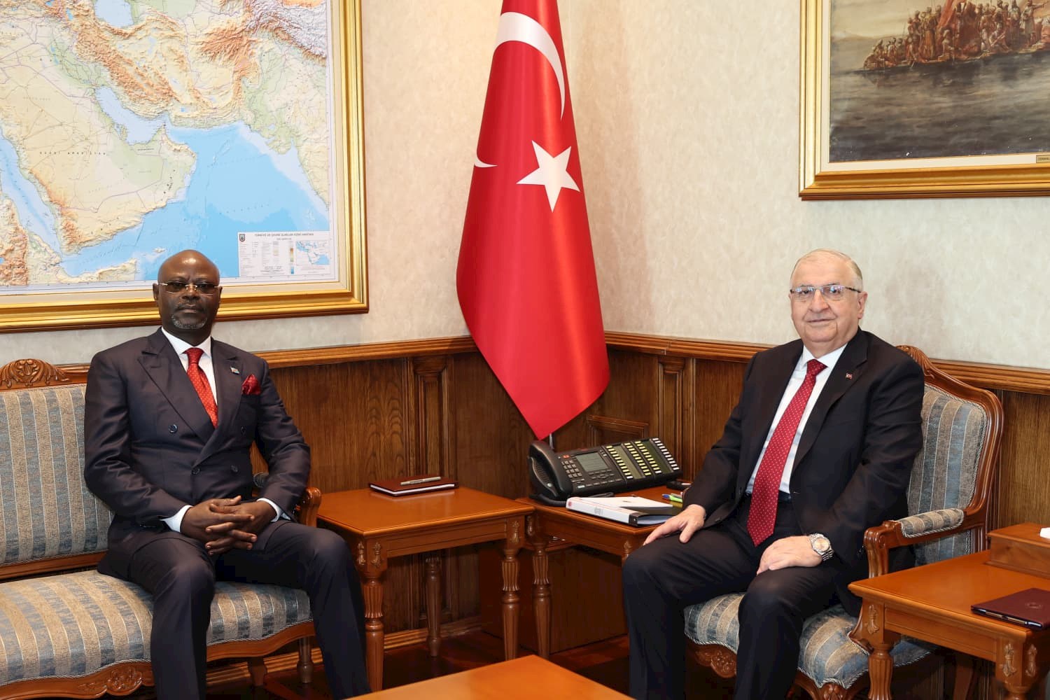 Millî Savunma Bakanı Yaşar Güler, Kongo Savunma Bakanı Guy Kabombo Muadiamvita'yı Askerî Törenle Karşıladı