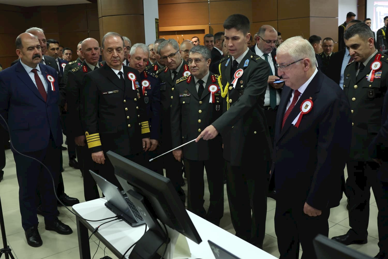 Millî Savunma Bakanı Yaşar Güler beraberinde Genelkurmay Başkanı Orgeneral Selçuk Bayraktaroğlu, Deniz Kuvvetleri Komutanı Oramiral Ercüment Tatlıoğlu, Hava Kuvvetleri Komutanı Orgeneral Ziya Cemal Kadıoğlu, Kara Kuvvetleri Komutanı Orgeneral Metin Tokel, Bakan Yardımcısı Salih Ayhan ve Millî Savunma Üniversitesi Rektörü Prof. Dr. Erhan Afyoncu ile katıldığı törende Harbiyelilere hitaben bir konuşma yaptı.