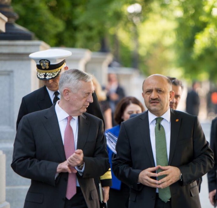 Cumhurbaşkanı Recep Tayyip Erdoğan'ın ABD ziyaretine eşlik eden Milli Savunma Bakanı Fikri Işık, Amerikalı mevkidaşı James Mattis ile Beyaz Saray'da terör örgütü PKK/PYD ve DEAŞ'la mücadele konularını görüştü.