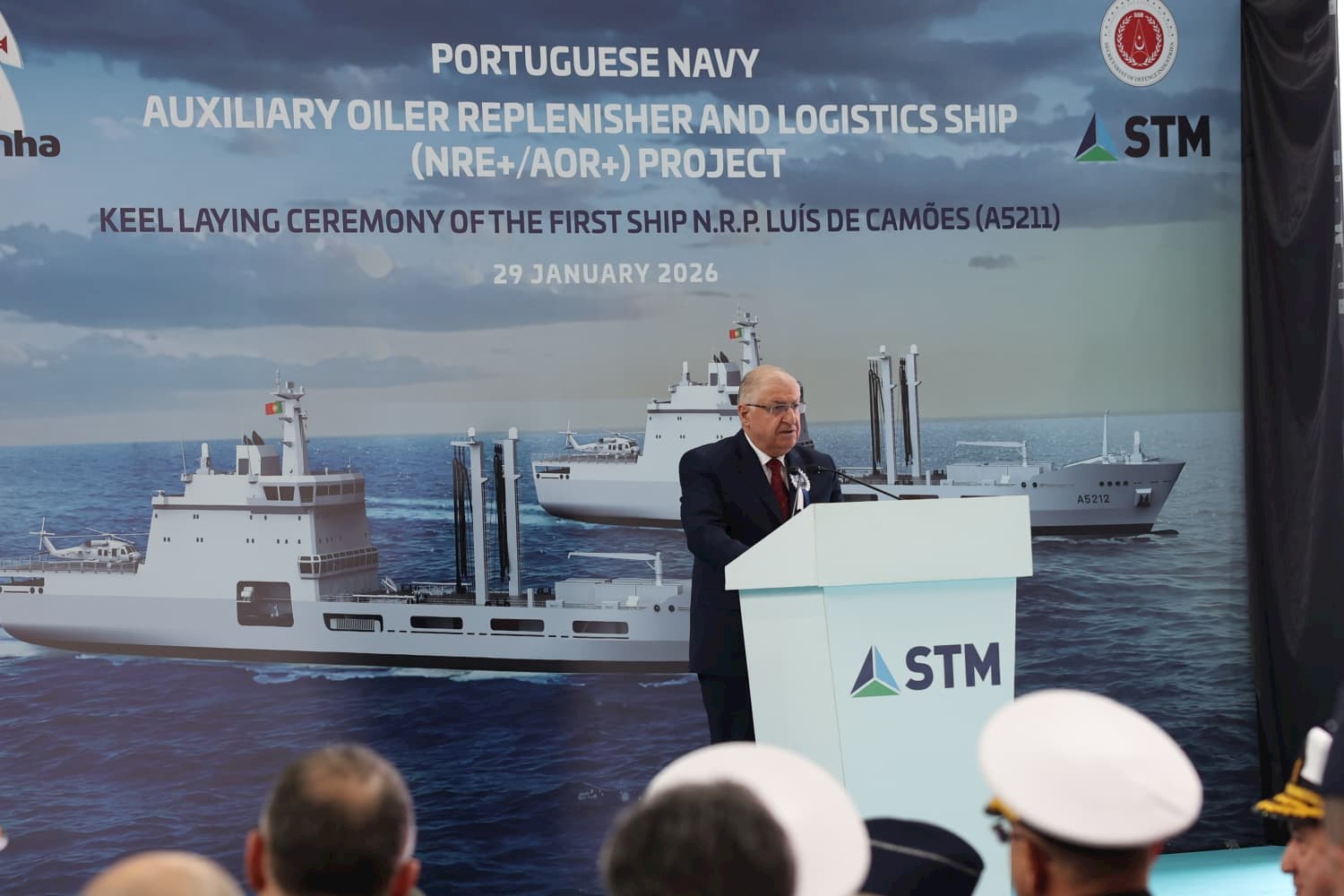 Tarih: 29.01.2026Millî Savunma Bakanı Yaşar Güler ve Portekiz Savunma Bakanı Nuno Melo, Portekiz donanması için inşa edilecek denizde ikmal ve lojistik destek gemisinin ilk gemi kızağa koyma töreni için İstanbul’da buluştu.