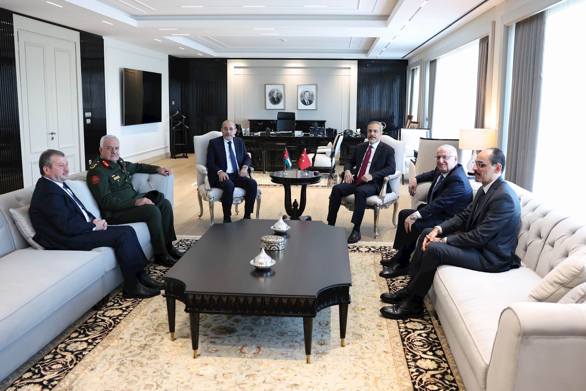 Dışişleri Bakanı Hakan Fidan’ın ev sahipliğindeki toplantıya Millî Savunma Bakanı Yaşar Güler, MİT Başkanı İbrahim Kalın, Ürdün Genelkurmay Başkanı Tümgeneral Yusuf el-Huneyti ve Ürdün Genel İstihbarat Teşkilatı Başkanı Tümgeneral Ahmed Husni de katıldı.